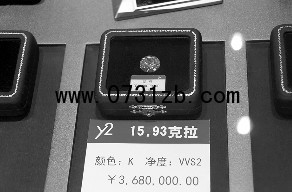 15克拉巨鉆現身新街口 比"鴿子蛋"還貴售價達368萬