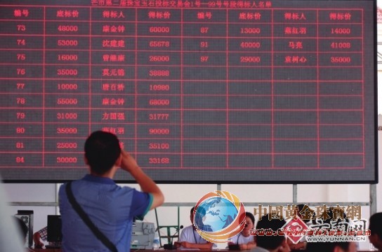 據悉,此次交易會進行投標的貨品有2000余份,總重達100多噸。進場的珠寶玉石毛料全部為翡翠,并且多數貨品不攔標。從前3天的下標與后兩天的開標現場來看,參與的人員絡繹不絕。下標,各客商人手一把小電筒,一支筆,一個小本子,仔細地“研究”貨品;開標,大家齊聚于發布現場,耳朵聽宣讀,眼睛看液晶滾動屏幕,注意自己是否“中標”。“首屆公盤的時候,只是來看了看,并沒有實際參與其中,經過一年時間對珠寶玉石的了解,這次的公盤就心癢癢,覺得可以實際操作一下。”第一時間就“蹲守”在現場的本地市民王先生表示,自己已經中了兩標。不僅如此,許多愛玉、玩玉的專業人士都千里迢迢趕來芒市,積極參與此次交易會,其中又以廣東、福建商人居多。