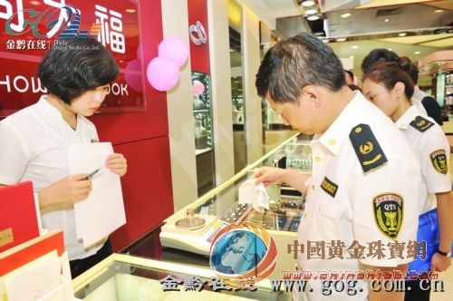 6月3日至6月10日,省計量院、南明區質監局,對貴陽新華路上的金鉆珠寶、智誠六福珠寶、上海老廟黃金等18家金銀珠寶店電子天平進行監督檢查,發現部分金銀珠寶店在用計量器具達不到國家規定的精度要求,金銀飾品的標識不符合《金銀飾品標識管理規定》。執法人員立即下發了整改通知,督促限期整改。