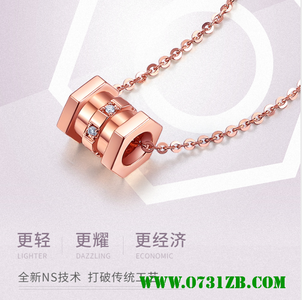 小蠻腰吊墜創新性的采用了獨特的ns技術,將足金的3D硬金工藝在18K金材質上進行復刻,打造出飽滿顯大的3D硬18K金。這種工藝不僅加強了18K玫瑰金的光澤感,更是以輕省的金料制作出大體積的效果,比如一件正常要2g左右的配飾,采用ns技術只需要1g左右就可以得到同樣效果,直接從成本上幫消費者減輕購買壓力。