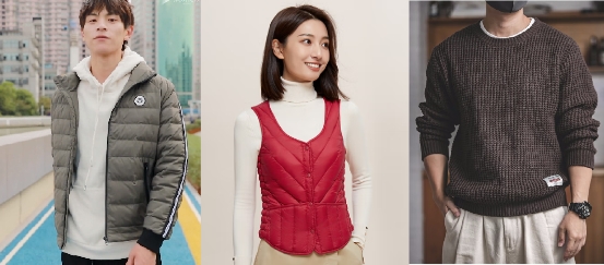 海瀾之家立領舒適羽絨服、高梵輕薄羽絨馬甲、馬登工裝圓領粗線毛衣