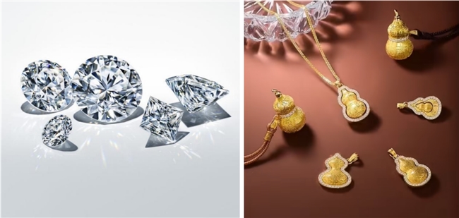 黃金鑲嵌莫桑鉆不僅是工藝上的革新,更在情感層面與消費者產生了共鳴。在中國傳統文化里,黃金象征著吉祥如意、富貴安康,常與福、祿、壽等吉祥元素相融合,承載著人們對美好生活的憧憬與祝福。莫桑鉆那璀璨奪目的火彩,宛如陽光般溫暖人心,給人以希望和力量;黃金可塑性強,能被巧妙打造成各種精美造型,為莫桑鉆搭建起一個完美的展示舞臺。當黃金與莫桑鉆相遇,它們的結合便如同一場奢華與璀璨的盛宴,令整個珠寶作品熠熠生輝!