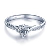 • 時尚的四爪鑲嵌烘托出中間美鉆的璀璨光芒,兩邊戒臂上并排鑲嵌的小鉆靈巧精美,讓你猶如盛裝出場的公主,驚艷所有的目光。