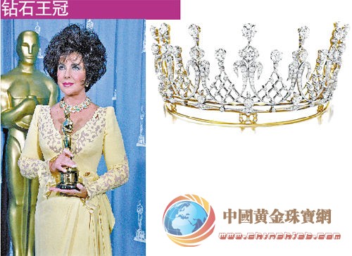 這頂來自梵克雅寶的王冠第一次的亮相出現(xiàn)在1957年的金球獎上,獲得杰出貢獻獎的泰勒就是戴著這頂由鉆石和黃金打造的珠寶成為當天最引人注目的女王。邁克爾-托德在把禮物送給她的時候說:“你是我的女王,我認為你應(yīng)該有一個王冠才可以。”后來,在泰勒的電影《一代情侶》中也可以看到這頂王冠的身影。