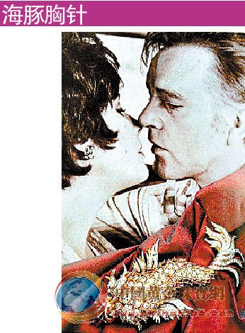 1962年,在泰勒主演的電影《巫山風(fēng)雨夜》首映夜,與她因電影《埃及艷后》的合作而暗生情愫的好萊塢影星理查德-伯頓將這枚海豚胸針送給泰勒。這款胸針是由蒂芙尼素有“珠寶詩人”之稱的設(shè)計師約翰-史隆伯杰設(shè)計,由200顆鉆石、兩顆圓形藍寶石、21顆祖母綠鑲嵌而成,其工藝繁復(fù)而不失精巧細致,成為兩人的定情信物。